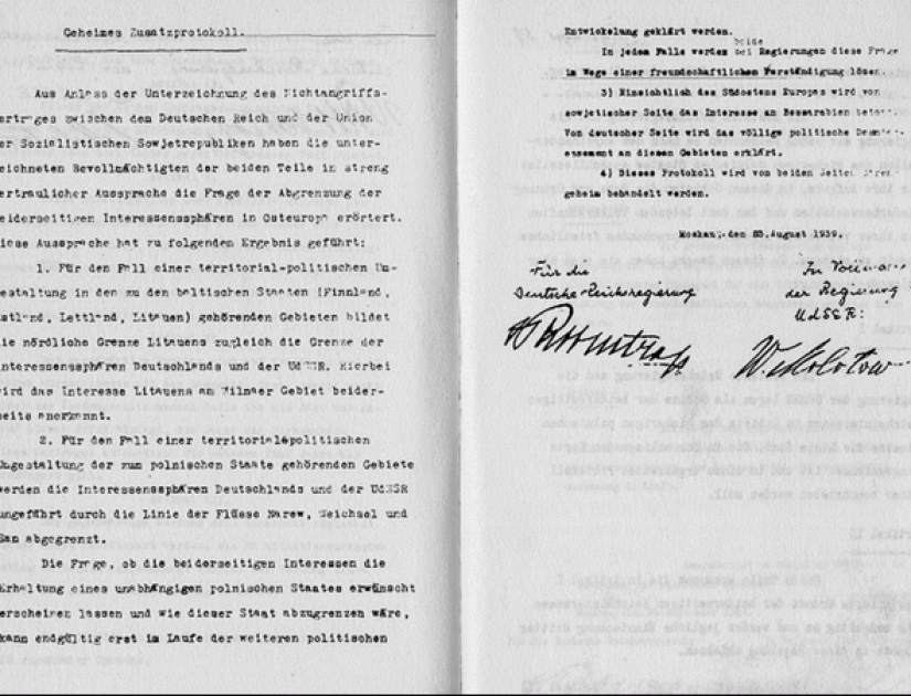 Sowieckie zaprzeczenie istnieniu tajnego protokołu, najbardziej obciążającego dokumentu z negocjacji dotyczących paktu, okazało się niezwykle trwałe. W 1983 roku, pod koniec swojego życia, Wiaczesław Mołotow został zapytany przez dziennikarza o istnienie tajnego protokołu. Jego odpowiedź była jednoznaczna. Pogłoski na temat dokumentu miały na celu zaszkodzenie ZSRR. Mołotow powiedział: „Nie było żadnego tajnego protokołu”.  (...)