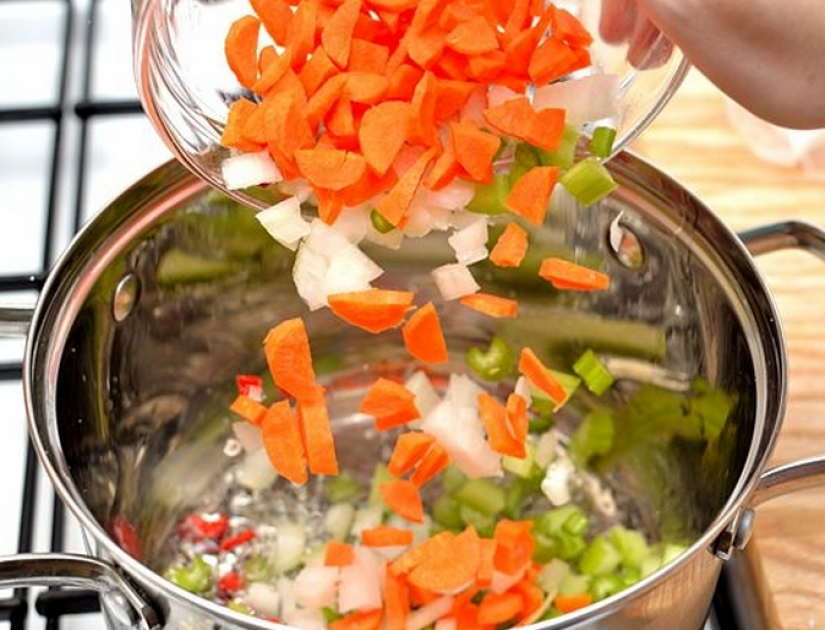 To dość logiczne, że twardsze warzywa gotują się dłużej – i to właśnie je wrzuć do garnka w pierwszej kolejności. Dopiero po jakimś czasie dodaj te, które gotują się najkrócej.