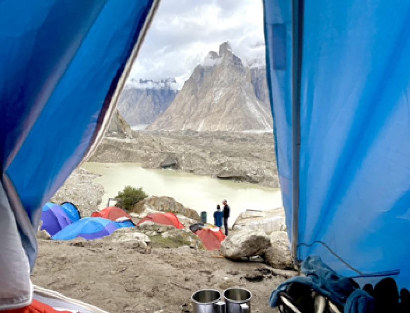 Docierając na czoło lodowca Baltoro otwiera się przed nami jeden z najbardziej spektakularnych widoków jakie miłośnik gór może sobie wymarzyć - przed nami strzeliste sześciotysięczne turnie Trango (6286m) i Biaho (6417m).