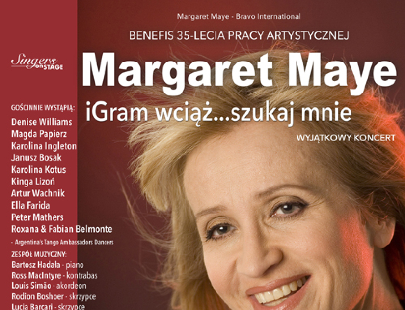Margaret Maye, znana i ceniona w Ontario mezzosopranistka obchodzi w tym roku jubileusz 35 lat pracy artystycznej na scenie i estradzie. Jest to doskonały powód do benefisu, który organizuje sama jubilatka, i który przybierze formę koncertu podczas którego wystąpi dwudziestu śpiewaków, piosenkarzy i muzyków.